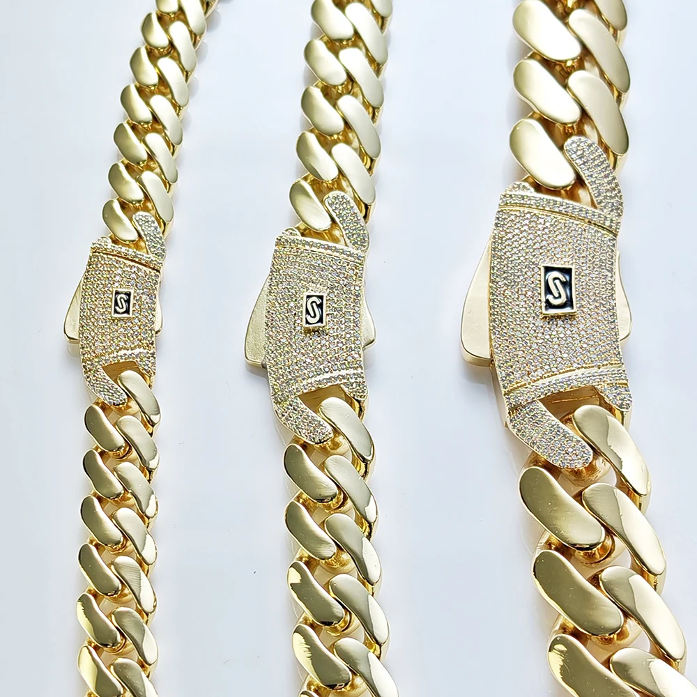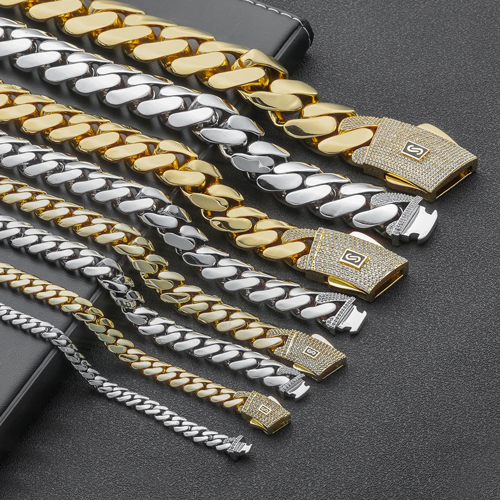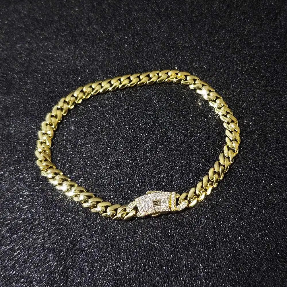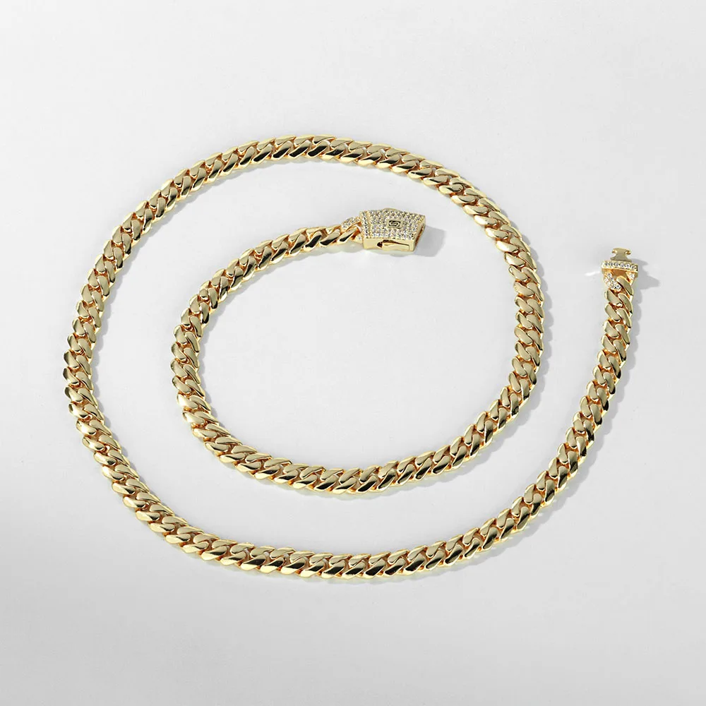 Material: cubic zirconia,Brass with Zircon Cuban Chain