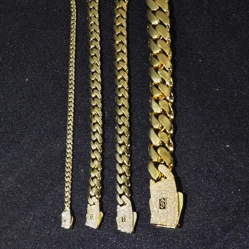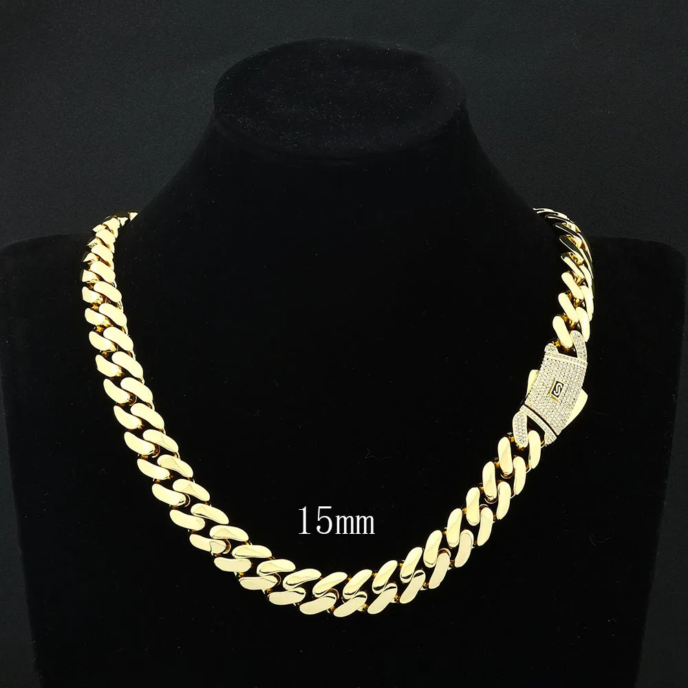 6/8/10/12/15/20mm Monaco Cuban Chain Necklace Hip Hop 14k Gold Plating Cuban Chain Bracelet Hip Hop Jewelry