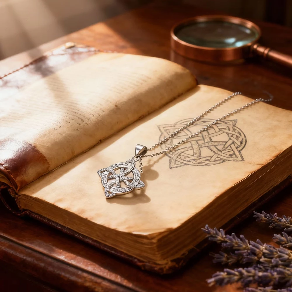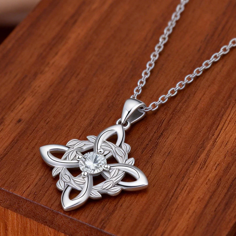 925 Thai Silver Classic Witch Knot Necklace With Zircons Trinity Knot Good Luck CZ Charm Wiccan Symbol Protection Jewelry