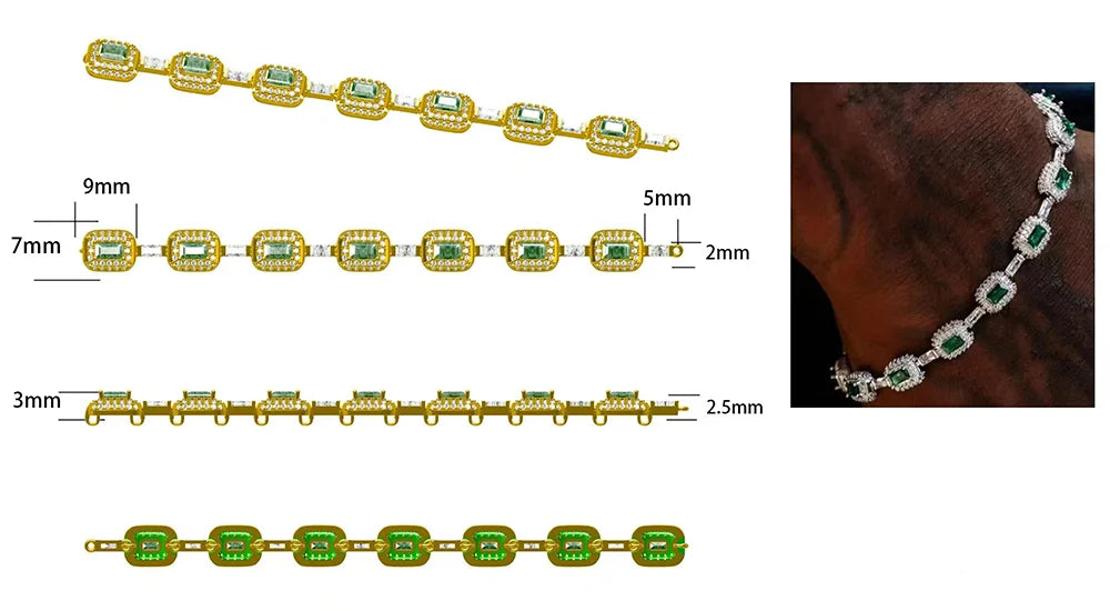 ESKEEM Fashion Jewelry Iced Emerald Cushion Cut Diamond Bracelet White Gold Inlaid Green Baguette Zircon Women's Bracelet